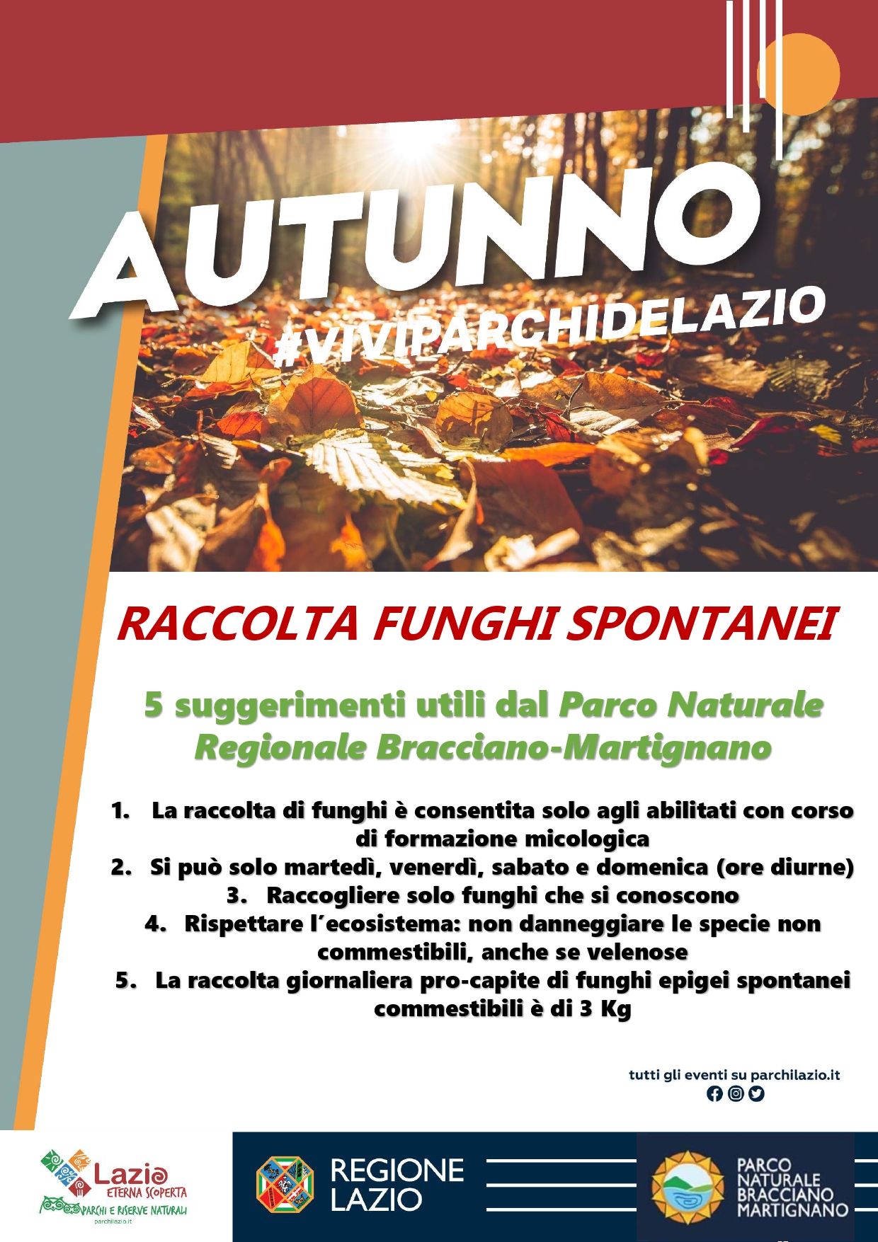 Giovedì 22 Dicembre 2022 Bando per la selezione degli operatori volontari da impiegare in progetti afferenti a programmi di intervento di Servizio civile universale da realizzarsi in Italia e all'estero Fino alle ore 14.00 di venerdì 10 febbraio 2023 è possibile presentare domanda di partecipazione ad uno dei progetti che si realizzeranno tra il 2023 e il 2024 su tutto il territorio nazionale e all'estero. Presso le sedi della rete "ParchieBorghi" sono disponibili 73 posti oltre ai posti disponibili. Leggi di più Venerdì 16 Dicembre 2022 I GUARDIAPARCO DI BRACCIANO-MARTIGNANO METTONO IN SALVO UNA POIANA FERITA: SARA' TRASPORTATA AL CENTRO RECUPERO ANIMALI SELVATICI DEL LAGO DI VICO Ferita ad un'ala, adesso le cure Leggi di più Mercoledì 7 Dicembre 2022 Regione Lazio, 387mila euro per i sentieri del Parco Naturale Regionale Bracciano Martignano Dal rifacimento delle staccionate alla sistemazione del fondo fino alla costruzione di un ponte sul guado: finanziati 13 interventi per i 130 Km della nuova rete sentieristica dell'area protetta lacustre. Leggi di più Domenica 27 Novembre 2022 Denunciati due bracconieri nel Parco Naturale Regionale Bracciano Martignano Residenti a Formello, sorpresi dai Guardiaparco coi fucili carichi nella Valle del Baccano, zona protetta da 23 anni: sequestrate le armi, sono stati denunciati alla Procura della Repubblica di Tivoli per attività venatoria illecita. Leggi di più Mercoledì 23 Novembre 2022 GIORNATA NAZIONALE DEGLI ALBERI: LA CELEBRAZIONE DEL PARCO Come ogni anno, si festeggia la Giornata nazionale degli alberi, riconosciuta con l'art. 1 della Legge 14 gennaio 2013, n. 10. Leggi di più Martedì 22 Novembre 2022 I laghi del Parco Bracciano-Martignano tornano sulla Rai Il complesso vulcanico sabatino domani su Rai Tre nella trasmissione Geo Leggi di più Venerdì 18 Novembre 2022 Libro Bianco del Verde, c'è anche il Direttore Daniele Badaloni DANIELE BADALONI, DIRETTORE DELL'ENTE DI GESTIONE DEL PARCO NATURALE REGIONALE BRACCIANO-MARTIGNANO PARTECIPA AL CONVEGNO di presentazione del Libro Bianco del Verde - LA SALUTE E IL VERDE / IL VERDE E LA SALUTE - quale nona tappa regionale del percorso del "Libro Bianco del Verde". Badaloni partecipa alla tavola rotonda dal titolo 'LA CURA E LA GESTIONE DEI PARCHI URBANI E PERIURBANI PER UN NEORINASCIMENTO DEL VERDE' Leggi di più Venerdì 28 Ottobre 2022 IL PARCO NATURALE REGIONALE BRACCIANO-MARTIGNANO PATROCINA LA NUOVA STAGIONE DELL'ACCADEMIA MUSICALE DELL'ALTO LAZIO XXIII FESTIVAL INTERNAZIONALE DI PIANOFORTE E MUSICA D'INSIEME CON PIANOFORTE Leggi di più Lunedì 19 Settembre 2022 Raccolta funghi, le buone pratiche dal Parco Bracciano-Martignano Con l’arrivo dell’autunno riparte la raccolta dei funghi spontanei, una disciplina normata dalla Regione Lazio e controllata dai Guardiaparco Leggi di più Mercoledì 10 agosto 2022 Sondaggio del Parco sul "turismo sostenibile" Nel Parco Naturale Regionale di Bracciano - Martignano è in corso un’indagine volta a verificare il concetto di turismo sostenibile percepito dai residenti e dagli operatori delle strutture ricettive nel territorio del Parco, riconducibile alle finalità istituzionali dell’Ente. Leggi di più Martedì 25 luglio 2022 Avviso pubblico di Manifestazione di interesse Avviso pubblico di Manifestazione di interesse per la vendita dell'AUTOCARRO MITSUBISHI L 200 Anno 2008 targa DP064VN di proprietà dell'Ente Parco. Leggi di più Martedì 12 Luglio 2022 Lago di Bracciano, vertici Acea rinviati a giudizio per il disastro ambientale aggravato del 2017 La disposizione del Tribunale di Civitavecchia conferma l’importanza di tutelare l’ecosistema lacustre. Comuni ed Ente Parco rilanciano però il turismo: “l’invito è di venire al lago”. Riprenderà a navigare la Motonave Sabazia II del Consorzio di Navigazione. Leggi di più